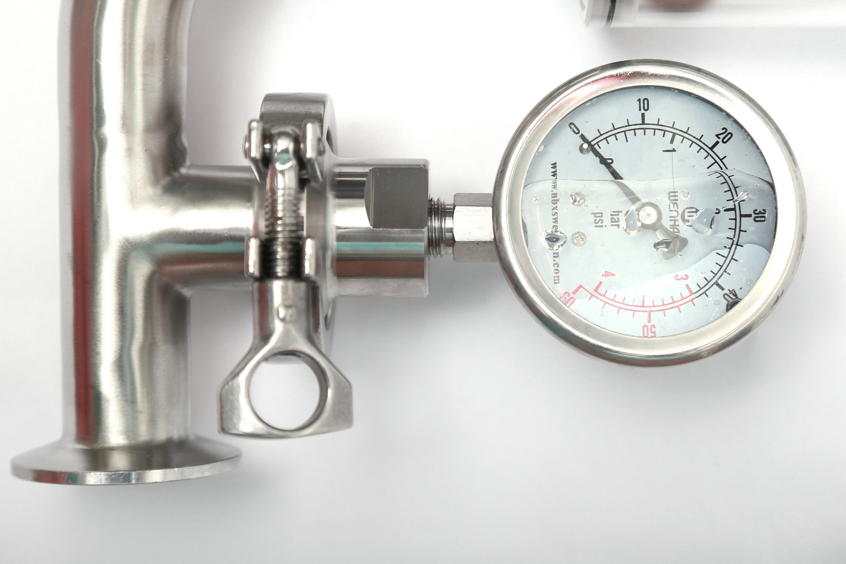 Wh-5101A鏈接;快裝 卡箍   隔膜式壓力表 ,隔膜卡盤Φ50.5,表盤Φ60 壓力范圍0-4bar   防震.手動式,旋鈕調節刻度壓力。